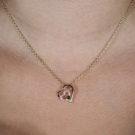 Collier motif cœur femme carador en plaqué or avec spinelles vert et blanc