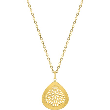 Collier Pendentif Carador style goutte ajourée orientale en acier doré