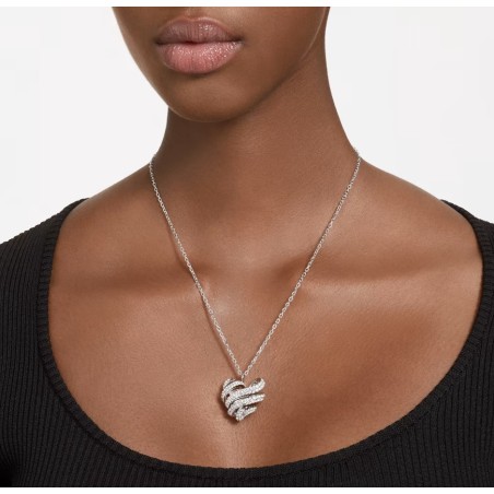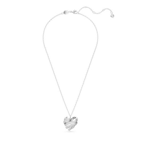 Collier Pendentif Swarovski en acier argenté avec Cristaux Motif coeur Maille forçat