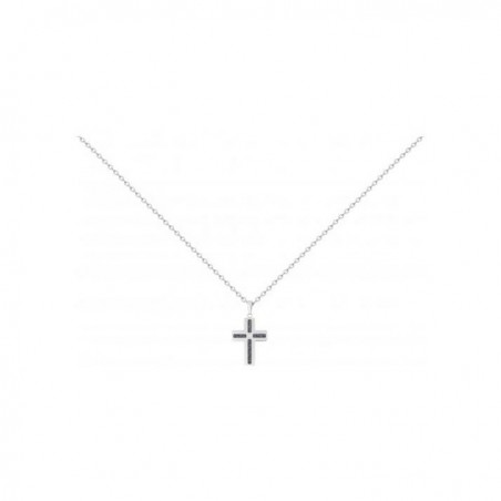 Collier Phebus en acier argenté motif croix, carbone et diamant