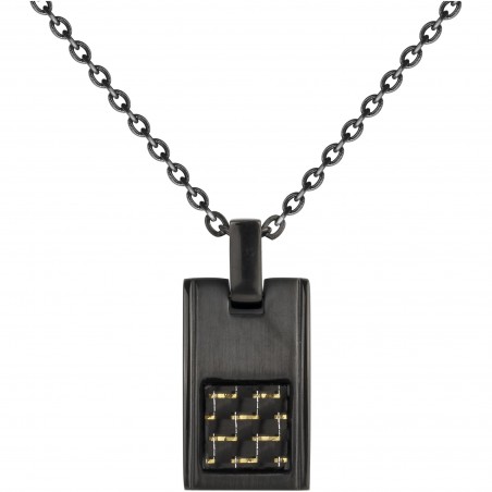 Ce modèle est noir et possède une chaine maille fantaisie et un pendentif plaque rectangulaire.