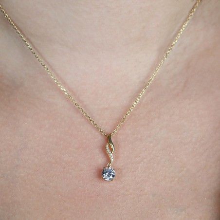 Ce modèle est composé d’un oxyde de zirconium surmonté de trois autres plus petits dans leur écrin plaqué or.Intemporel et brillant, ce bijou illuminera votre cou au quotidien.