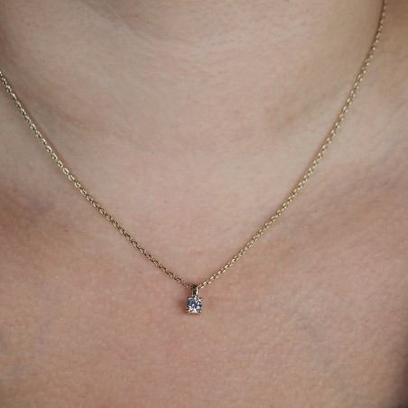 Ce modèle est composé d’un solitaire oxyde de zirconium.Intemporel et brillant, ce bijou illuminera votre cou au quotidien.