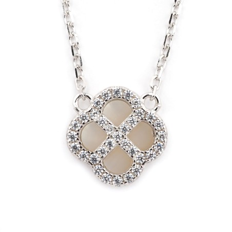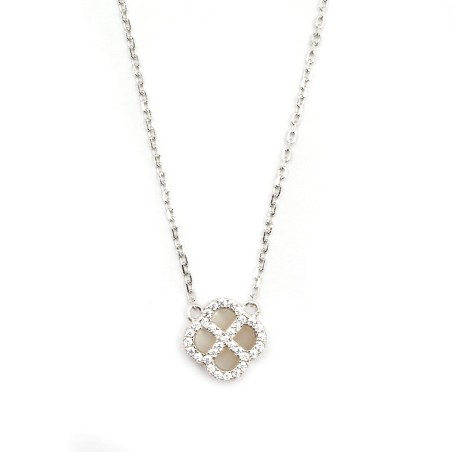 Collier Silver Pop Femme Argent - Oxydes de zirconium et Nacre - Trèfle