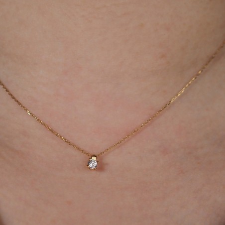 Collier Solitaire Carador en or jaune 375/000, oxyde de zirconium de 3mm serti 4 griffes