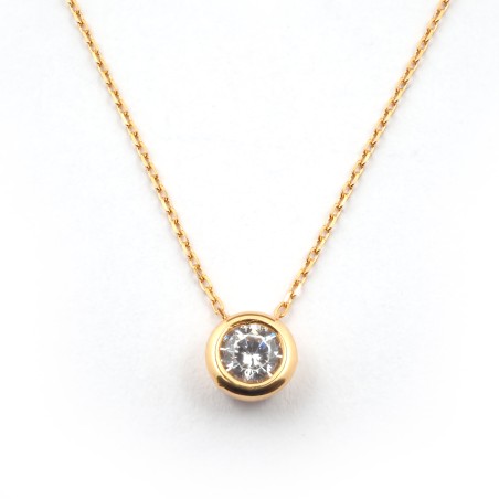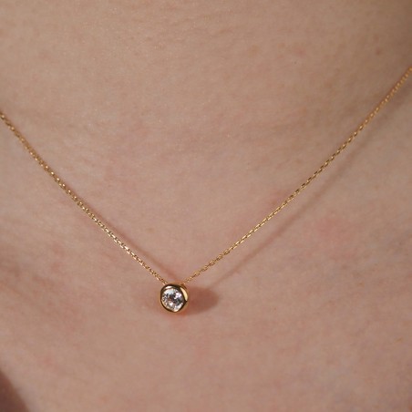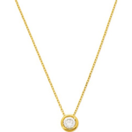 Collier Solitaire Carador en or jaune 375/000, oxyde de zirconium de 4mm serti clos