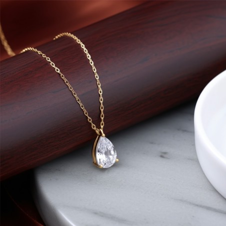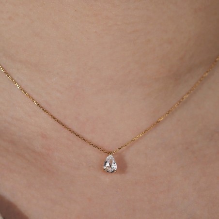 Collier Solitaire Carador en or jaune 375/000, oxyde de zirconium serti