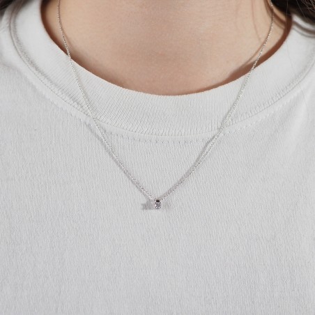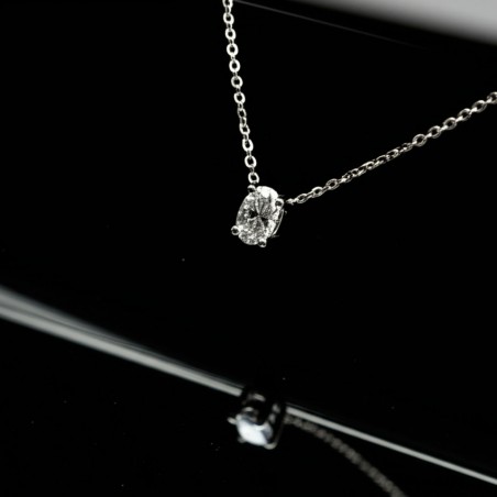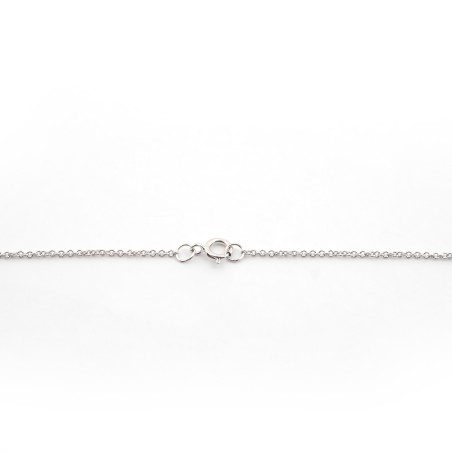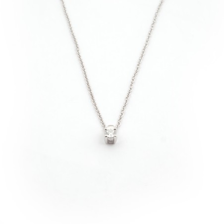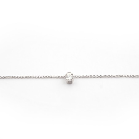 Ce modèle est composé d'une chaine en or blanc 18 carats maille forçat fine rehaussé par un solitaire en diamant véritable de 0.1 carats serti quatre griffes .