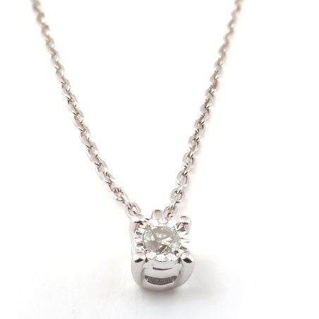 COLLIER SOLITAIRE FEMME CARADOR EN OR BLANC 375/000 ET DIAMANT 0.035