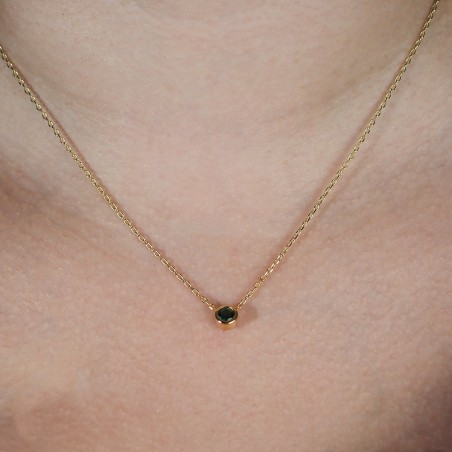 Collier solitaire femme carador en plaqué or avec oxyde de zirconium vert serti clos
