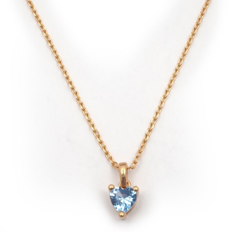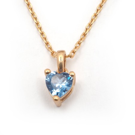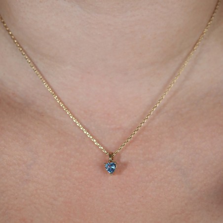 Collier solitaire femme carador en plaqué or avec spinelle bleu 3 griffes motif cœur