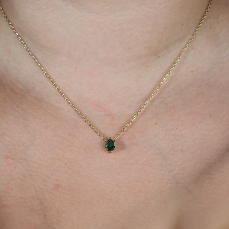 Collier solitaire femme carador en plaqué or avec spinelle verte motif goutte