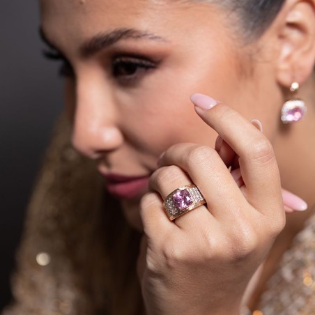 BAGUE FEMME GRIFFE ROUGE MARGARET PLAQUE OR ET OXYDE ROSE