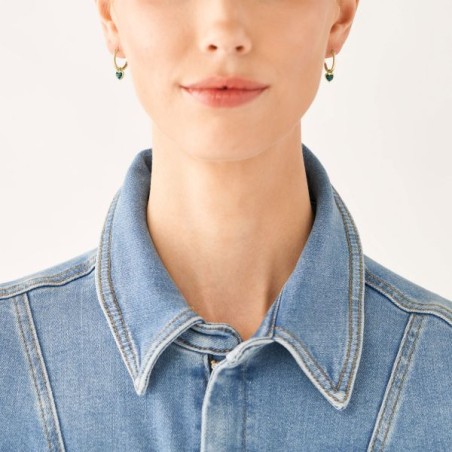 Créoles Fossil cœur acier Modern Meadows en malachite