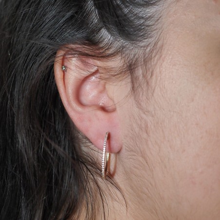 Ce modèle de type créole est incrusté d'oxyde de zirconium.Ce bijou lumineux et pétillant est un must-have de votre boite à bijou.