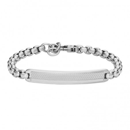 Gourmette Fossil Knox avec plaque en acier argentée