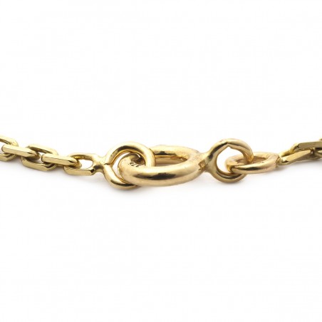 D'une longueur de 14 cm ce bijou fait d'une plaque de dimension 2cm x 0.4cm est en maille forçat avec son fermoir à ressort.