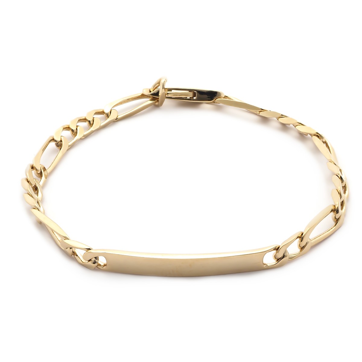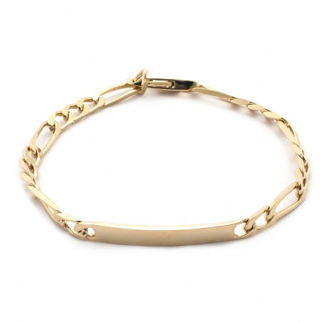 Votre Bijouterie en ligne vous propose cette gourmette en plaque or. D'une longueur de 17.5 cm ce bijou fait d'une plaque de dimension 2.7cm x 0.4cm est en maille figaro.
