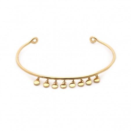 Parez-vous de doré et jouez les accumulations avec la sélection de bijoux plaqué or signés Carador. Le bracelet jonc présenté ici est un jonc ouvert sur lequel se trouvent des breloques en forme de disques. Un bijou simple et élégant que l'on aime porter seul ou en accumulation. dimensions : 55 x 45 mm