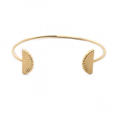 Parez votre poignet de doré avec la sélection de bijoux plaqué or signés Carador. Le bracelet jonc présenté ici est un jonc ouvert avec un motif d'éventail aux extrémités. Laissez-vous séduire par la simplicté et l'élégance de ce jonc. dimensions : 60 x 45 mm