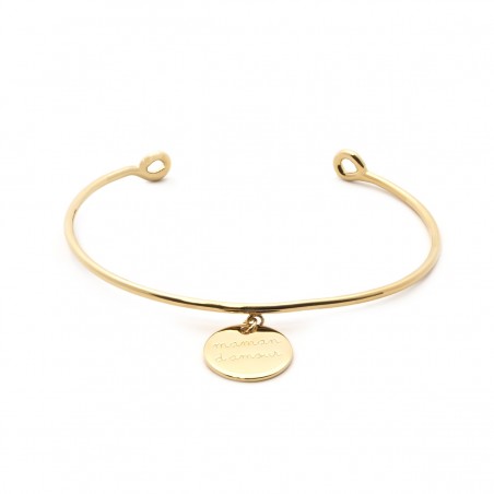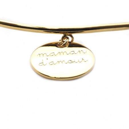 Faites passer le message avec un bijou et soyez sûr de faire plaisir avec la sélection de bijou plaqué or de votre bijouterie Carador. Ce bijou se compose d'un jonc ouvert sur lequel se trouve une pastille gravée "maman d'amour". dimensions : 55 x 45 mm