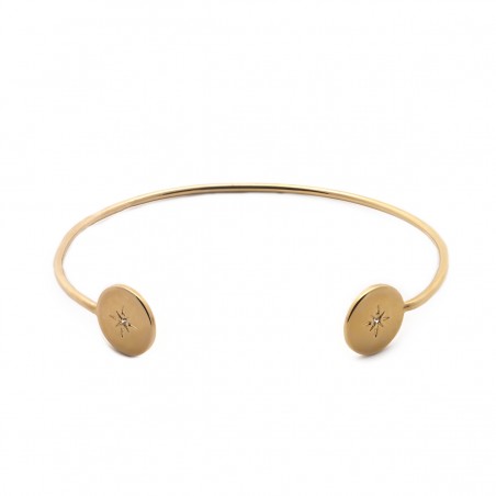 Parez-vous de doré avec la sélection de bijoux plaqué or signés Carador. Le bracelet jonc présenté ici est un jonc ouvert dont les extrémités se terminent par des pastilles avec étoiles. Laissez-vous séduire par la simplicté et l'élégance de ce jonc. dimensions : 60 x 45 mm
