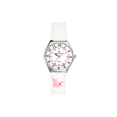Naturelle et impertinente, tendre et curieuse, cette montre Lulu Castagnette Mini Star avec un bracelet en Cuir synthétique Blanc à Tacheté Rose est à l'image des petites filles qui la porte. Ce modèle à boitier en Métal Argenté et cadran Pédagogique Blanc permet de se familisariser avec la lecture des heures et minutes.
