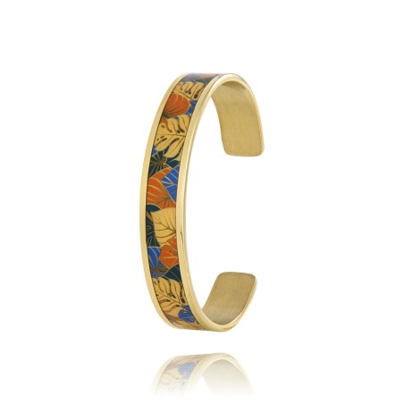 MANCHETTE FINE LOUISE'S GARDEN FEUILLES EXOTIQUES EN ACIER DORE 1.2CM