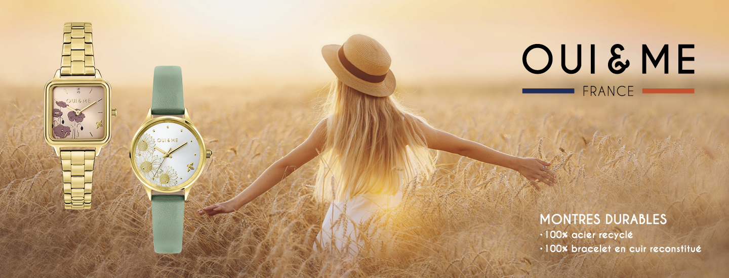 Concrètement, nos bracelets et notre pochette sont en cuir recyclé, nos outils de communication sont durablement gérés et notre dernière nouveauté : des diamants écologiques. Nous apportons également notre soutien aux apiculteurs, en offrant une montre OUI & ME, vous participer à la sauvegarde des abeilles !