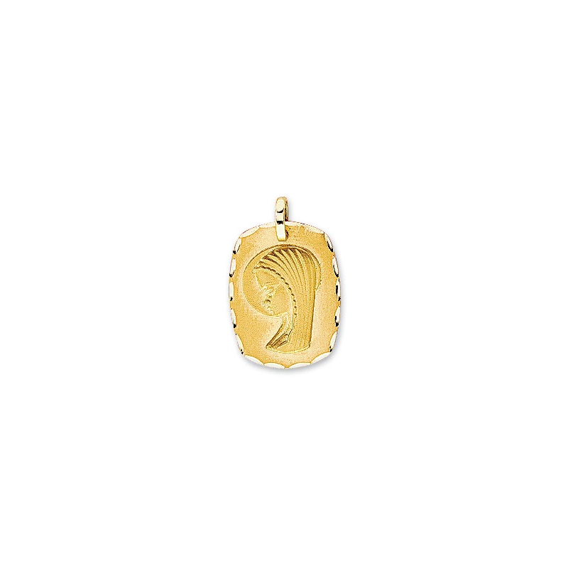 Vous cherchez un bijou pour un baptême, Carador vous propose cette médaille rectangulaire en or jaune 375/000.