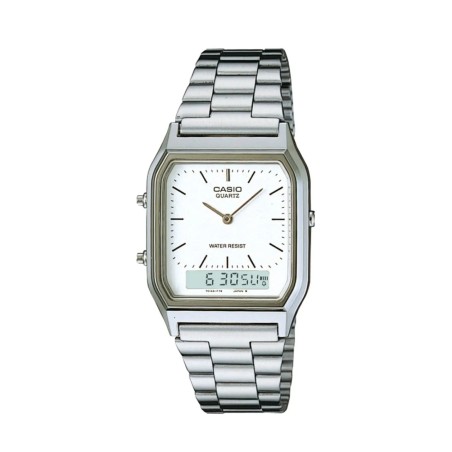 Montre Casio Digital - Acier Argenté Fond Bleu Blanc