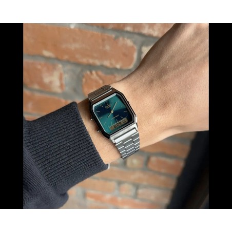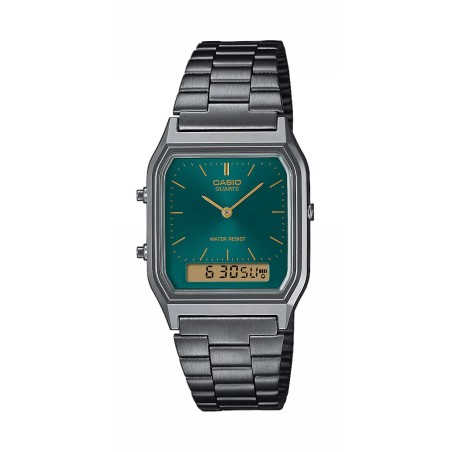 Montre Casio Digital - Acier Noir Fond Bleu Canard Index Doré