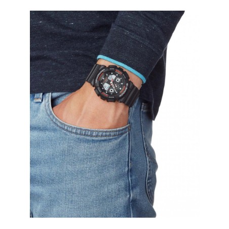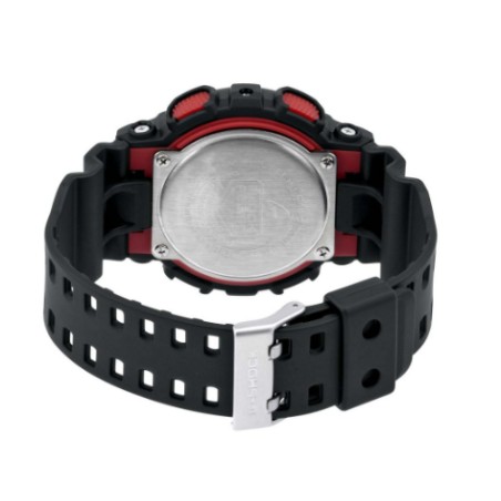 Ce modèle au look ultra sport se compose d'un bracelet en silicone noir d'une largeur de 2.2 cm et d'un cadran également en silicone noir laissant apparaître les aiguilles de couleurs rouge et grise.