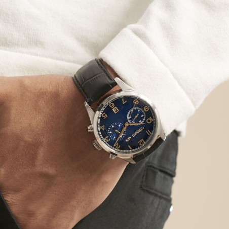 Montre Cerruti 1881 Cavareno Homme bracelet cuir noir effet croco fond de cadran bleu