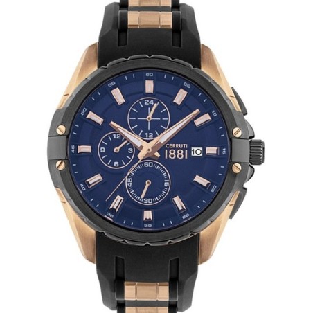 MONTRE CERRUTI 1881 VOCETO HOMME BRACELET SILICONE NOIR CADRAN BLEU CHRONOGRAPHE
