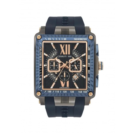 MONTRE CERRUTI 1881 HOMME BRACELET SILICONE BLEU MARINE CADRAN CARRE CHRONOGRAPHE