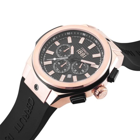 MONTRE CERRUTI 1881 RUSCELLO HOMME BRACELET SILICONE NOIR CADRAN DORE ROSE CHRONOGRAPHE