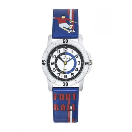 MONTRE CERTUS ENFANT EN CUIR BLEU FOOTBALL CADRAN PEDAGOGIQUE