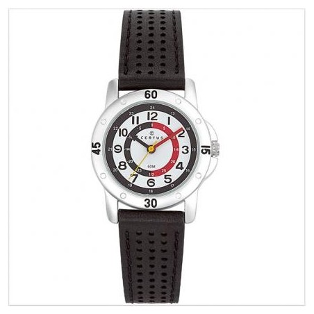 MONTRE CERTUS ENFANT EN CUIR NOIR CADRAN PEDAGOGIQUE