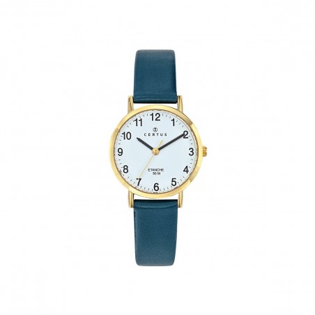 Montre Certus Femme Acier doré et bracelet en cuir bleu