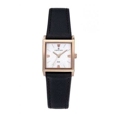 MONTRE CERTUS FEMME BRACELET CUIR NOIR BOITIER CARRE DORE ROSE