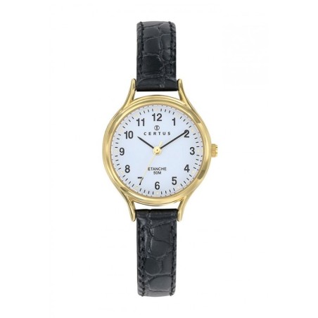 Montre Certus Femme bracelet cuir noir effet croco fond de cadran blanc