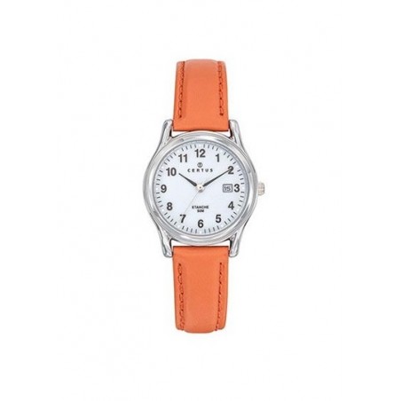 Montre Certus Femme bracelet cuir orange cadran blanc
