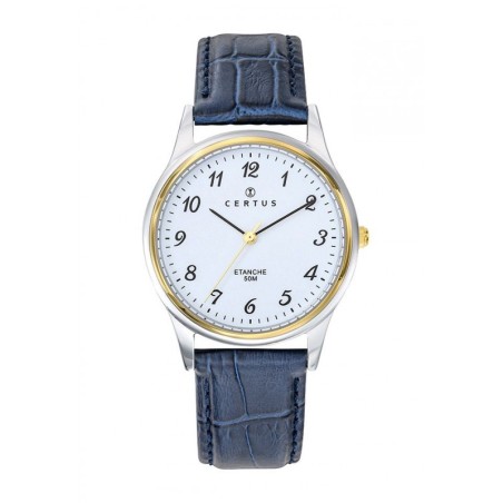 Montre Certus Homme acier bicolore cuir effet croco bleu