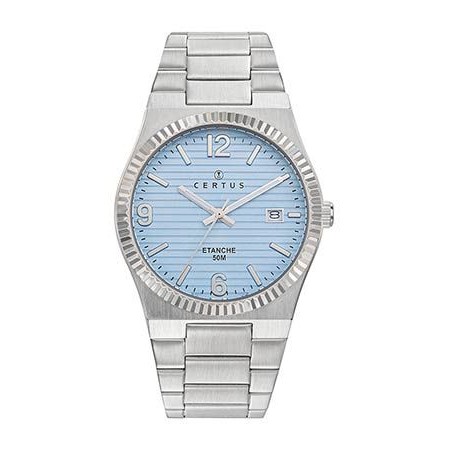 Montre Certus homme Bracelet acier argenté et Cadran bleu clair