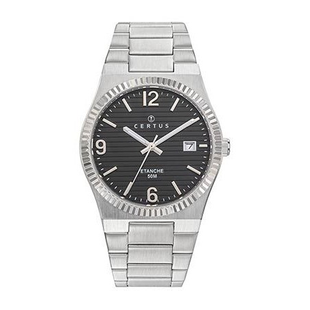Montre Certus homme Bracelet acier argenté et Cadran noir