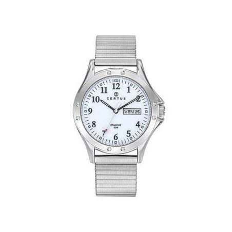 MONTRE CERTUS HOMME BRACELET ACIER ARGENTE EXTENSIBLE CADRAN BLANC DATEUR JOUR ET DATE
