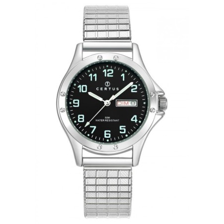 MONTRE CERTUS HOMME BRACELET ACIER ARGENTE EXTENSIBLE CADRAN NOIR DATEUR JOUR ET DATE