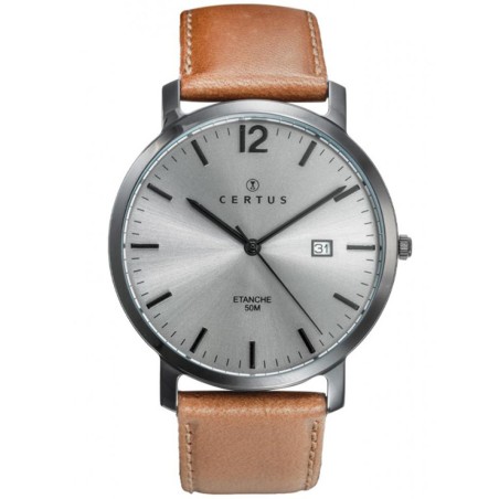 MONTRE CERTUS HOMME BRACELET CUIR MARRON CADRAN GRIS DATEUR A 3H