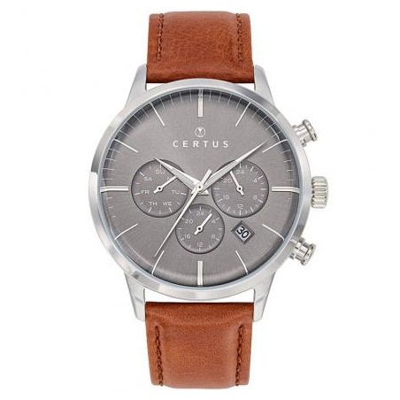 MONTRE CERTUS HOMME BRACELET CUIR MARRON CADRAN GRIS DATEUR ET CHRONOGRAPHES